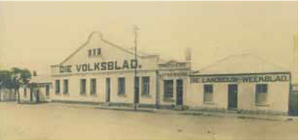 Figuur 2. Die maatskappy se eerste kantore in Bloemfontein met regs die “klein woonhuis” waarin Landbouweekblad gehuisves was.