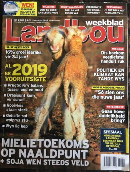 In 2019, in the magazine’s centenary year, the agricultural industry that the magazine is serving faces huge challenges. Given the magazine’s background, it can be concluded that the goals it set for itself one century ago are still being pursued, and that the magazine can indeed be described as a barometer for the agricultural industry and South Africa. Indeed, within the agricultural concept of a barometer as an indicator of weather patterns, and thus as being of vital importance to agriculture in terms of good or bad news, it could be said that the magazine has been, and still is, a social barometer of its time over its existence of one hundred years.
