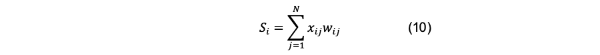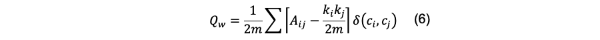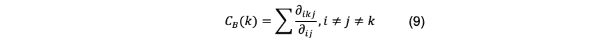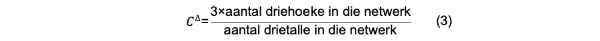 In Vergelyking (2) verwys Ei na die aantal skakels tussen die bure van i en ki na die aantal direkte bure van i. Die groepsvorming van die hele netwerk is dan die gemiddeld van CiWS vir al die nodusse (Humphries en Gurney 2008).