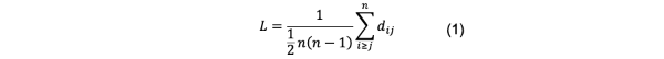 In Vergelyking (1) dui dij op die geodetiese afstand (die kortste pad) tussen nodusse i en j. Tabel 1 hier onder verskaf onder andere die gemiddelde pad vir ’n aantal maatskappydirekteurnetwerke, insluitend die instellingsnetwerk op Orania.