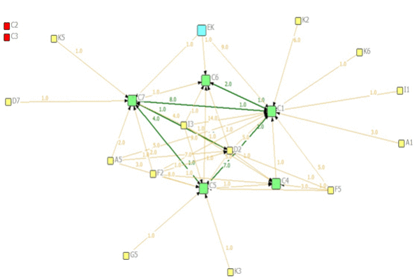 Die effektiwiteit van samewerking is tydens die ingeneste sosiale-netwerk-analise ondersoek.
