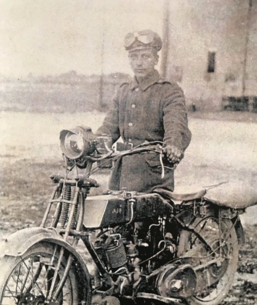 Oupa Michał met sy motorfiets in die Pools-Sowjet-oorlog as rapportryer vir die lugmag.