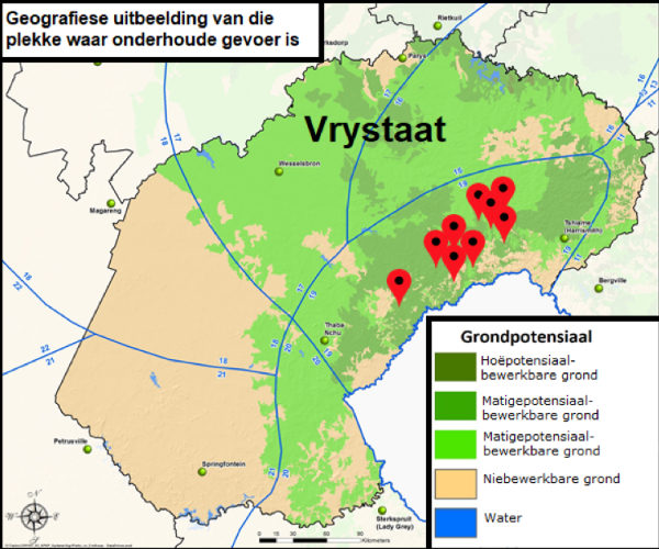 - Tweedens fokus hierdie studie slegs op die implementering van hierdie tegnologie op gewasse wat onder droëlandtoestande geplant word en daarom sal die resultate van hierdie studie slegs op die droëlandgebiede van die Oos-Vrystaat van toepassing wees. Besproeiingsboerdery word dus uitgesluit.