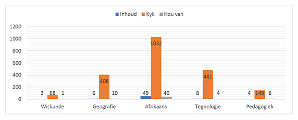 The fourth finding is that the online learning environment connects teachers with knowledge and one another, as required by the state (Republiek van Suid-Afrika 2004). However, most of the teachers do not actively participate. It is recommended that teachers be prompted to actively participate in discussions. If they cannot add valuable information, they can use the “like” facility to motivate those who have shared to share again.