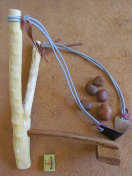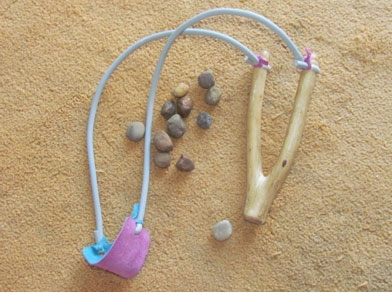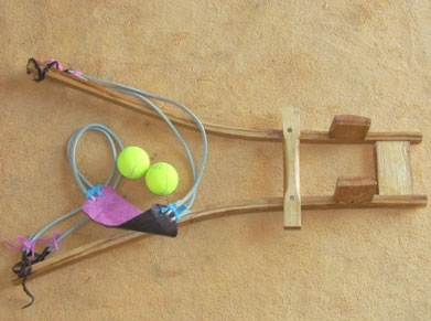 Omdat ek dubbele haasrek gebruik, kan mens met hierdie kettie ’n gróót rivierklip of stuk spek oor ses huise skiet. Eers toe iemand ná die derde rivierklip benoud van pyn gil, besef ek dat dit gevaarlik kan wees om klippe groter as gholfballe te gebruik.