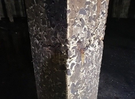 Roestraanmerke sigbaar aan die buitekant van die stutpilare (met erkenning aan AECOM, Terry February Photography).