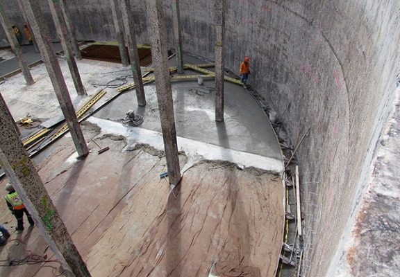’n Staalnetwerk is aan die binnekant van die mure aangebring (foto’s 6 en 7) wat as basis dien vir ’n nuwe gewapendebetonspuitverseëling (shotcrete) om alle moontlike lekkasies deur die muur te voorkom.