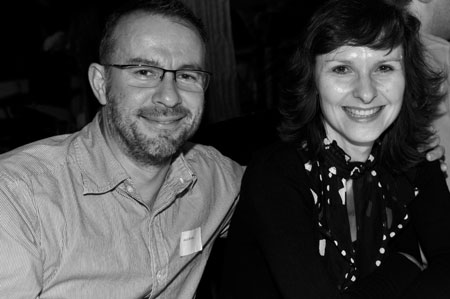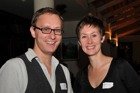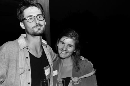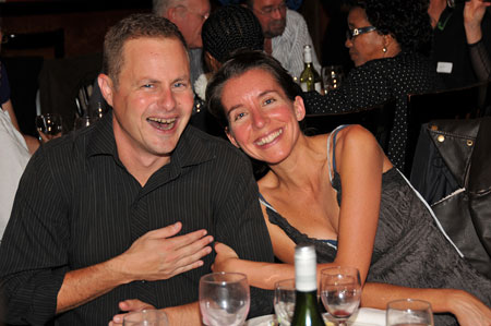 | Alex Smith (skrywer van Agency Blue) en haar metgesel, Andrew Salomon. | |