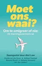 In Moet ons waai? takel meer as 20 van Suid-Afrika se voorste meningsvormers, insluitend Piet Croucamp, Dana Snyman, Melanie Verwoerd en Jonathan Jansen, hierdie vraag. Dit is poging tot insig oor ‘n kwessie wat swaar weeg op ons kollektiewe psige, en ’n uitdaging aan elke persoon wat dit oorweeg om te waai, reeds gegaan het of besluit het om te bly om te floreer as Suid-Afrikaners waar ook al hulle hulself mag bevind.