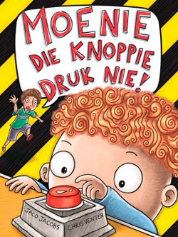 Moenie die knoppie druk nie Tiaan se bababoetie hou daarvan om knoppies te druk. “Moenie die knoppie druk nie!” skree Ma en Pa elke keer. Maar dit is elke keer te laat. Op ’n dag gaan doen Tiaan en sy gesin inkopies. Sy boetie beland in ’n reusagtige geel stootskraper en druk ’n knoppie ... Die stootskraper begin dreun en GROMMM! “Stop daardie stootskraper!” skree almal. Tiaan is die enigste een wat ’n plan het. ’n Lekker lawwe, lawaaierige, holderstebolder kleuterboek oor een van die onweerstaanbaarste dinge op aarde – ’n knoppie wat smeek om gedruk te word! |