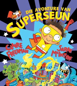 Die avonture van Superseun Daar’s ’n doodgewone outjie, hy lyk net soos ek of jy. Maar wie sou raai hy’s SUPERSEUN wat soms superkragte kry? Superseun is so vinnig soos blits, hy het x-straal-oë en hy skrik vir net mooi niks! Superseun kan sien as boelies jou kougom wil gaps, hy weet wat om met ’n bord vol broccoli te doen, en hy kan selfs seerowers laat les opsê! Jong, aspirant-superhelde sal hierdie humoristiese rymende prenteboek oor en oor geniet. En aan die einde is daar boonop ’n wonderlike boodskap – elkeen van ons het die potensiaal om ’n superheld te wees! |