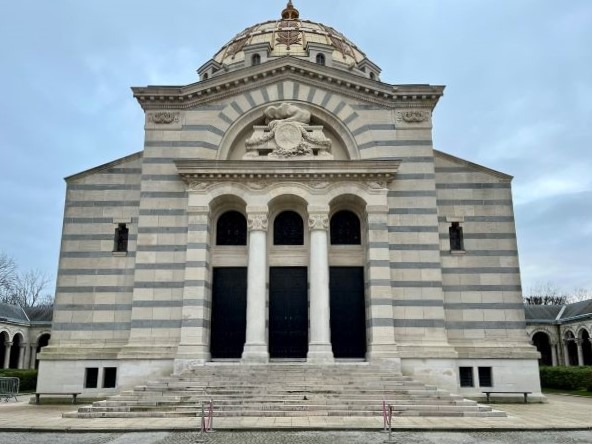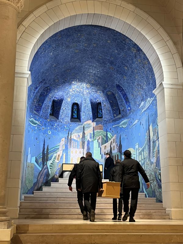 Die kapel by die Père Lachaise-begraafplaas waar die huldigingsdiens vir Breyten Breytenbach gehou is, 3 Desember 2024 (foto: Anelia Heese)