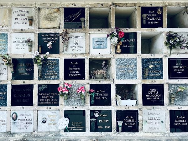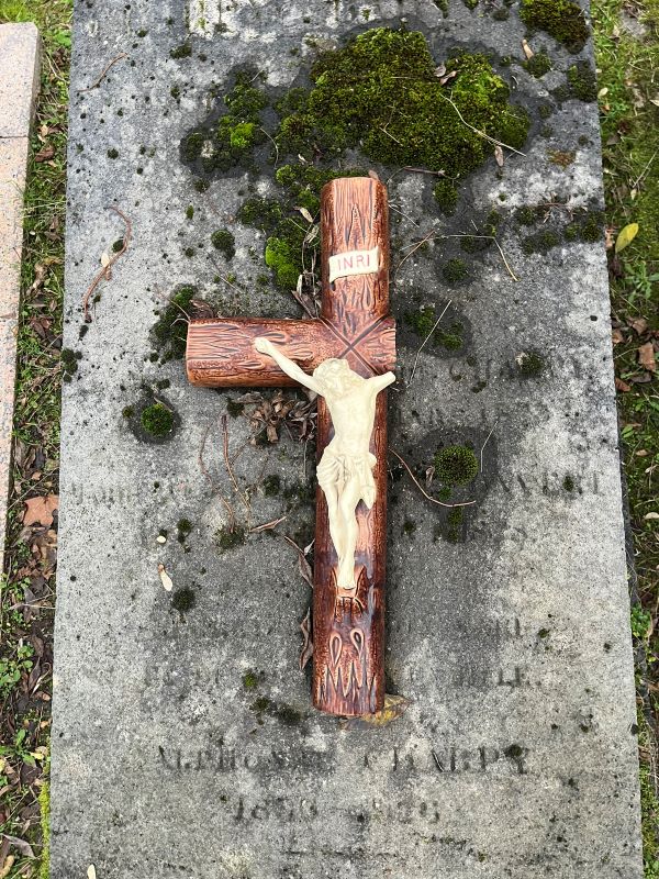 ’n Kruis op ’n graf by die Cimetière du Père-Lachaise in Parys, 3 Desember 2024 (foto: Anelia Heese)