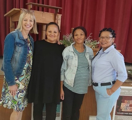 Biblioteekpersoneel: Reinie Smit, Andrewlene Plaatjies, Kato Mallies en Jeanetta Nel