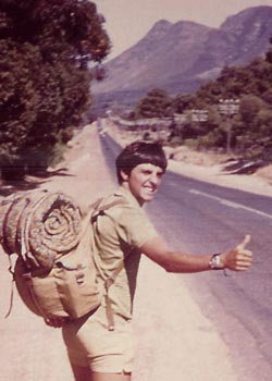 Dit was die dae van ons duimgooi- en fietstoere, waaroor ek hier drie foto’s plaas. Op die eerste ene vertrek ons van my stieftante, Susan Winshaw, se huis in Stellenbosch se Dorpstraat, La Gratitude. Op die tweede foto sit Koos agterop ’n lorrie wat ons triomfantlik verby Ashton neem. Op die derde foto gooi ek, tydens dieselfde ekspedisie, iewers in Hermanus se geweste duim.