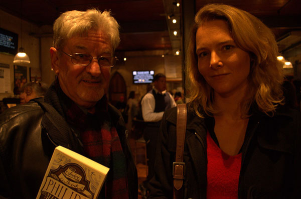 Na afloop van die gesprek het Brink eksemplare geteken. Hier staan hy by Günther Fintel van Kaapstad.