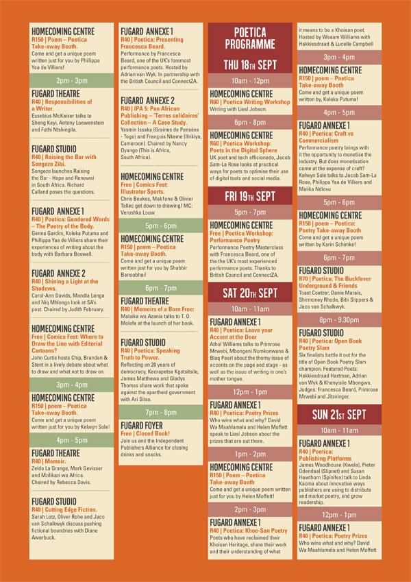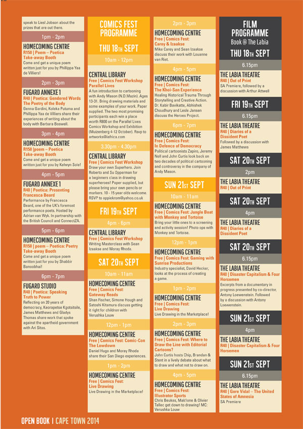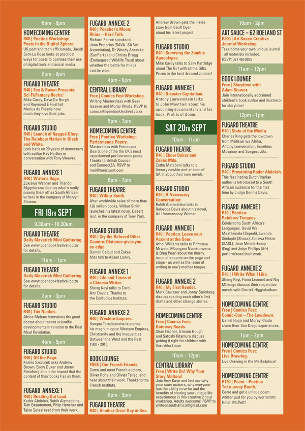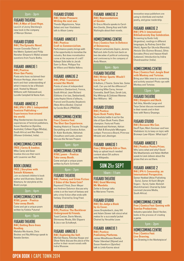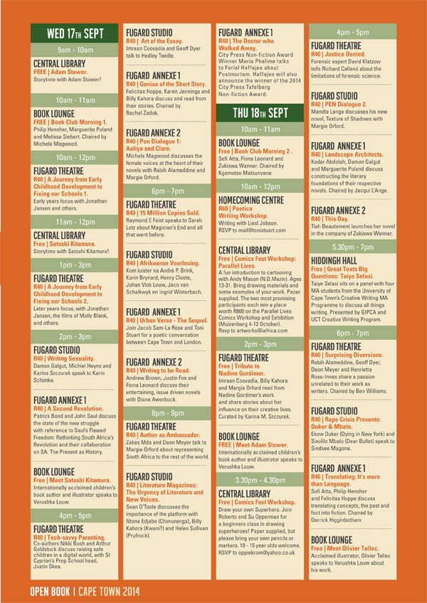 the exciting programme of Open Book Festival 2014: 17–21 September 2014 at the Fugard Theatre.