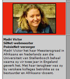 Hallo Madri, dankie vir die kans om te gesels. Sommige van ons lesers sal jou onthou as Madri Victor, voorheen SêNet-webmeester. Wanneer was jy betrokke by LitNet en wat is jou blywende indrukke van SêNet?