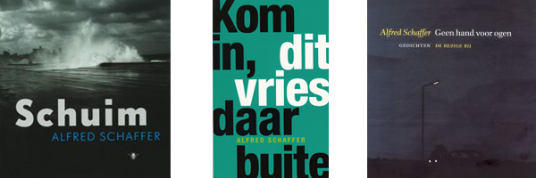 Op sy beurt staan Alfred Schaffer, as skrywer, ook in hierdie besondere tradisie. Die omslae van sy bundels bevestig dit al, veral dié van Dwaalgasten, Schuim en Geen hand voor ogen: onthutsend-sombere (see)tonele waarin lig tog, tot ’n mindere of meerdere mate, nie ontbreek nie. Die omslagillustrasie van Geen hand voor ogen is Jeroen Henneman se Nachtlandschap (1973). Die slotgedig in Kom in, dit vries daar buite, “Droomstart”, bevat ’n soortgelyke mededeling as die omslae. Ek haal Hugo se vertaling van hierdie sonnet aan: