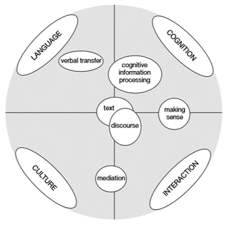 Figuur 1. Die konseptuele dimensies van tolking (Pöchhacker 2004:54)