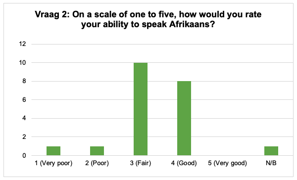 10 In alle besprekings van die vraelysresultate hiervandaan waar die data tot 20 in stede van 21 respondente optel, kan daar in die vervolg aanvaar word dat een student die vraag oorgeslaan het.