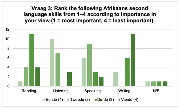 8 Die rede waarom die vraelys in Engels gegee is, is om die studente se affektiewe filter te verlaag deur hulle nie te gespanne te maak nie.