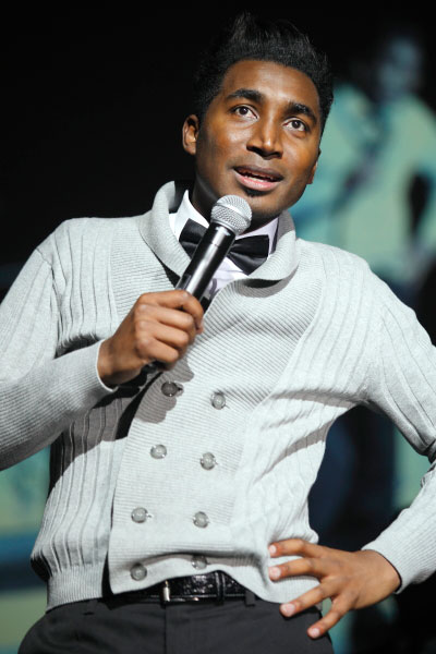Emo Adams - sien hieronder 'n inset van sy vermaak, waarvoor die gaste gelê het soos hul lag: