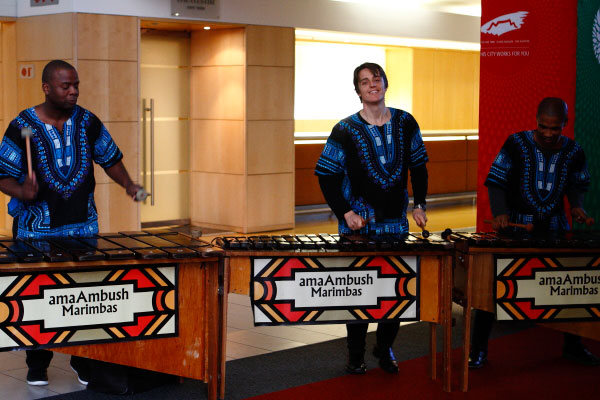 Elma Smit en Pierre Breytenbach verwelkom die gaste en bedank Kaapstad vir die heerlike weer (dis snerpend koud).