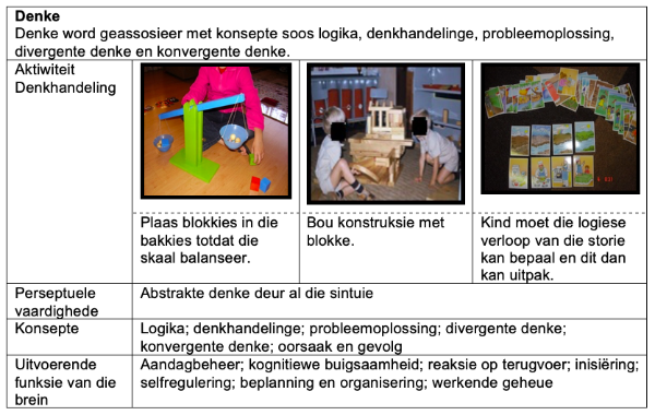 Trefwoorde: aktiwiteite; konsepvorming; perseptuele vaardighede; uitvoerende funksie van die brein; voorskoolse kinders