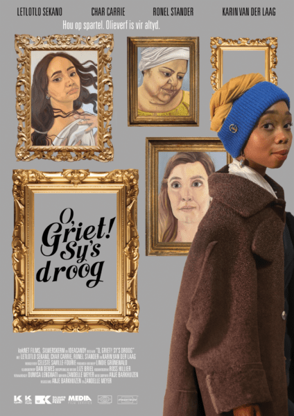 In O, Griet! Sy’s droog, the actors Char Carrie from Suidooster fame, Karin van der Laag, Letolo Sekano and Ronel Stander draw viewers into a new dimension. In this short film, the characters find themselves captives in framed paintings, each depicting a different version of society’s ideas on women. To escape from the confines of the frames seem impossible … Until a girl with a pearl earring arrives with new perspectives on their situation.