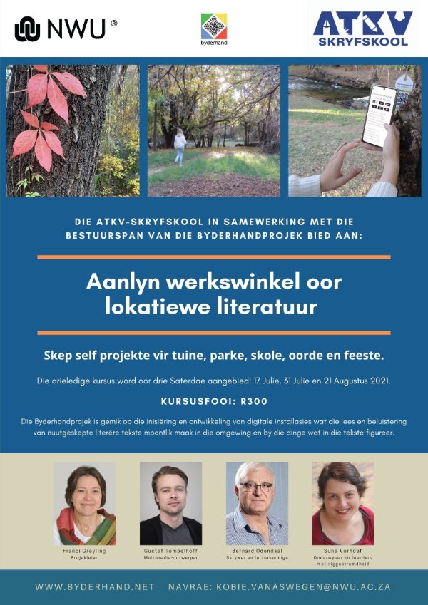 “Een van die uitsonderlikste werkswinkels in sy 32-jarige bestaan,” só beskou die personeel van die ATKV-Skryfskool van die Noordwes-Universiteit (NWU) die drieledige aanlynkursus wat hulle in samewerking met die bestuurspan van die Byderhandprojek van die NWU beoog.