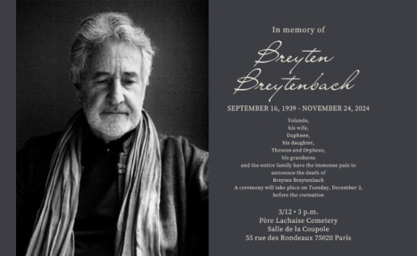 Persverklaring: Breyten Breytenbach-begrafnisaankondiging