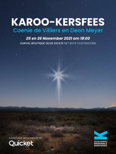 Gehore regoor die land was gaande oor De Villiers en Meyer se Karoo Suite 1& 2 en nou het die twee meesters en Karoo-liefhebbers ’n spesiale vertoning, Karoo-Kersfees saamgestel wat op 25 en 26 November om 19:00 by die pragtige Surval Boutique Olive Estate net buite Oudtshoorn opgevoer word.