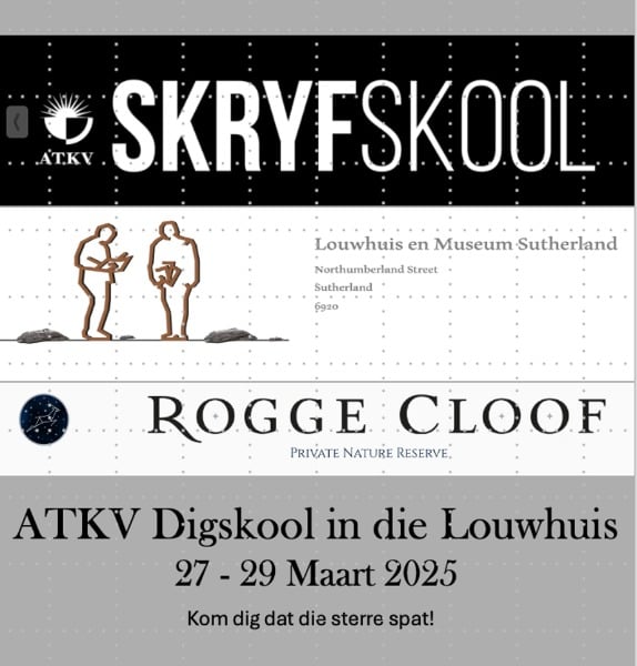 Die Louwhuis en Museum Sutherland bied weer die jaarlikse ATKV-Digskool op Vrydag 27 tot Sondag 29 Maart 2026 in die nuut gerestoureerde Louwhuis aan. Soos met die vorige digskole beloof dit om weer ’n besondere Roggeveldse ervaring te wees.