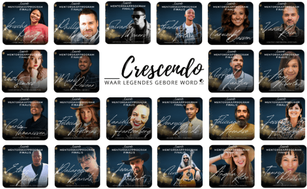 Ná ’n week van wik en weeg is 22 finaliste aangewys uit vanjaar se inskrywings vir die ATKV-mentorskapprogram wat van 30 Maart tot 6 April in die Paarl gaan plaasvind. Deelnemers kon hulle oorspronklike liedjies digitaal inskryf of persoonlike oudisies by ATKV-Crescendo se talentsoekers in die Tuinroete, Klein-Karoo, Weskus, Atlantis of Worcester doen. Vanjaar is daar ook vir die eerste keer oudisies in Namibië gehou, wat twee finaliste opgelewer het.