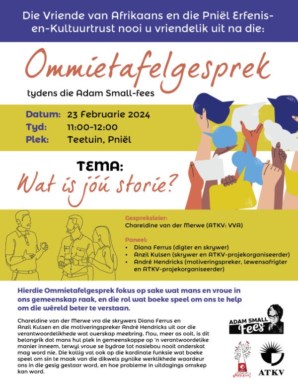 Die VVA se Ommietafelgesprek vind op 23 Februarie plaas. Chareldine van der Merwe lei die gesprek met Diana Ferrus, Anzil Kulsen en André Hendricks.