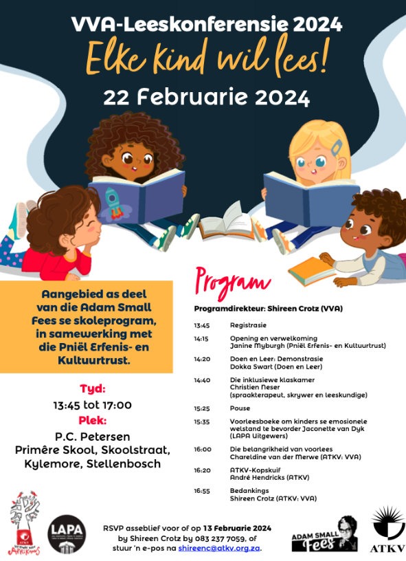 Die Vriende van Afrikaans (VVA) bied op 22 Februarie ’n VVA-leeskonferensie aan. Dit word ondersteun deur die ATKV en LAPA Uitgewers.