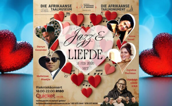 Dis ’n aand van musiek, pieknieks, teerheid en natuurskoon hierdie Valentynsdag wanneer die Jazz- & Liefde-piekniekkonsert plaasvind op Saterdag 14 Februarie 2026 by die Afrikaanse Taalmuseum en Monument (ATM) op die skilderagtige Paarlberg. Hierdie keer wag ’n unieke kombinasie van uitstaande jazz, sielvolle stemme en natuurlik liefde onder die sterre.