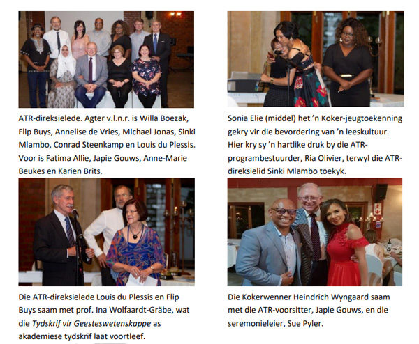 "Tale is ’n belangrike bate op Suid-Afrika se balansstaat," het Japie Gouws, voorsitter van die ATR, by die funksie gesê. "Ons moet hierdie bate gebruik tot voordeel van alle sprekers daarvan, en ook die waarde van veeltaligheid ontsluit tot voordeel van alle Suid-Afrikaners."