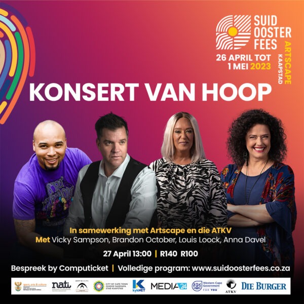 Konsert van hoop, die Suidoosterfees se verskeidenheidskonsert wat op Vryheidsdag in Artscape se Operahuis op die planke is, se geselskap sluit die gewilde sanger Vicky Sampson in, tesame met bekroonde kunstenaars soos die klassieke sanger, Louis Loock van Romanz-faam, die geliefde Anna Davel en Brandon October, en die Afro-popsanger Zimbini Ndiyehlela.