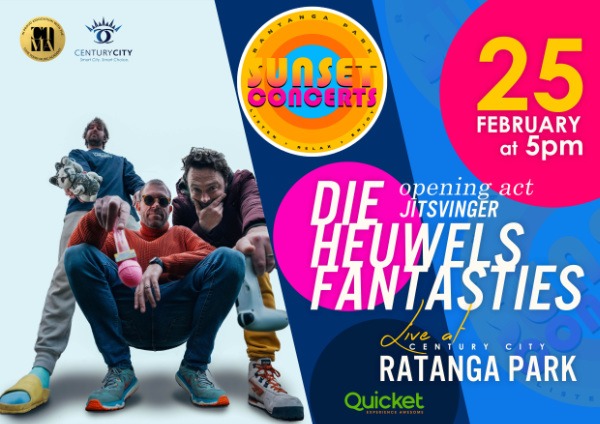 Kaapse musiekliefhebbers, bring julle familie en vriende en pak julle piekniekmandjies om saam met Die Heuwels Fantasties en Jitsvinger, die heel eerste ervaring van die Ratanga Park Sunset Concerts wat op Sondag 25 Februarie aangebied word, te vier.
