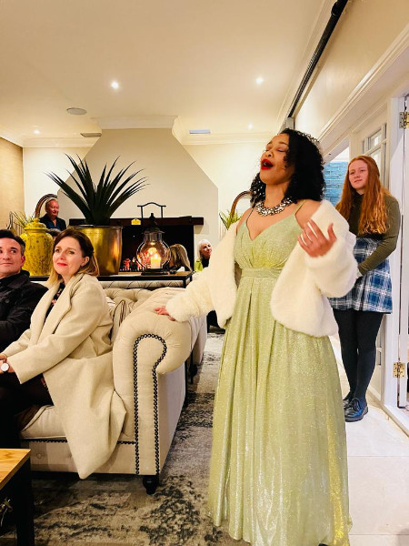 Sopraan Janel Speelman sing vir gaste tydens die geselligheid wat in Stellenbosch gehou is.