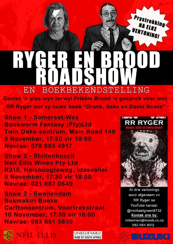 RR Ryger en Frikkie Brood is op pad Wes-Kaap toe. As julle in die omtes van Somerset-Wes, Stellenbosch of Swellendam is, neem kennis!