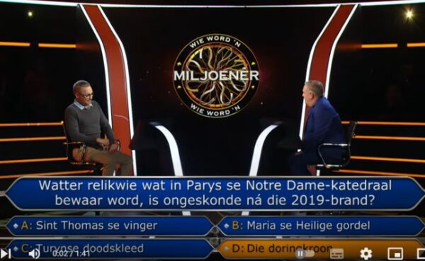 Hier is ’n uittreksel uit gisteraand se episode. Kyk hier onder na die wenoomblik.