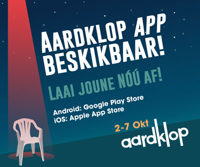 Die Aardklop-toepassing is gratis verkrygbaar in die Apple App Store vir iPhone en ook die Google Play Store indien jy ’n Android-toestel het. Tik slegs “aardklop” in en laai die toepassing af.
