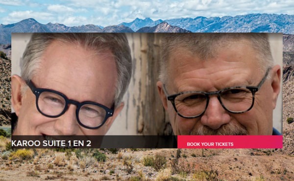 Deon Meyer en Coenie de Villiers se gewilde Karoo Suite-produksies word beskryf as die “mooiste liefdesbrief aan die Karoo”. Dié tweeluik – Karoo Suite en Karoo Suite 2: Karoonagte – is op 10, 12 en 13 Desember vir Kapenaars by Atlantic Studios se inryteater beskore. Albei produksies word elke aand ten bate van die Suidoosterfees en die Jakes Gerwel Stigting se liriekskryf-mentorskapprogram aangebied. Dis ’n double feature soos in die intryteaters van ouds, kompleet met ’n pouse vir burgers en melkskommels.