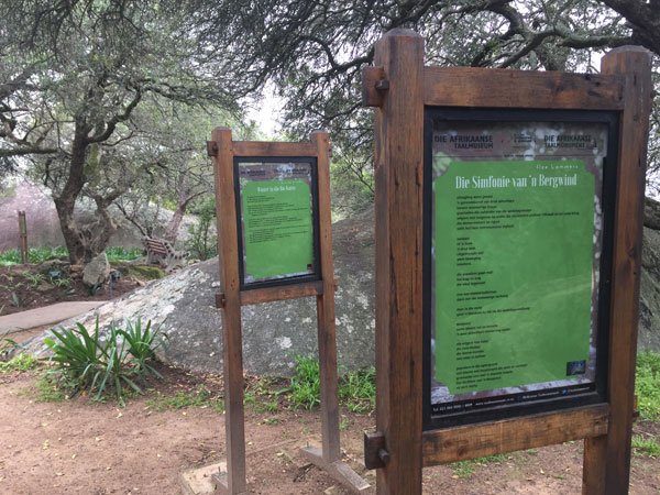 Die argitek van die monument, Jan van Wijk, het sterk gevoel oor die natuur en daarom word hy vereer deur dié buitelug galery waar sy as in ’n rots ingemessel is, knus omring deur inheemse olienhout en graniet. ’n Uitstalling van verskillende Afrikaanse skrywers word elke paar maande in dié galery se uitstalkaste van herwonne hout en glas aangebied om hiermee op die monument se kulturele én natuurlike aspekte te fokus. LitNet is ’n wyd-gerekende, interaktiewe joernaal op die internet waar skrywers hul verhale, gedagtes, rubrieke, artikels en opinies kan publiseer. Die ATKV-Skryfskool bestaan sedert 1985 en bied landwyd ’n verskeidenheid kort skryfkursusse aan enigiemand wat graag kreatief wil begin skryf of wat hul kreatiewe skryfwerk wil verbeter.