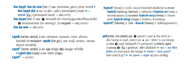 Wanneer gebruikers die woordeboek eers optimaal begin gebruik, sal hulle besef hoeveel taalleiding in beide tale op ’n baie kompakte en geïntegreerde wyse aangebied word.
