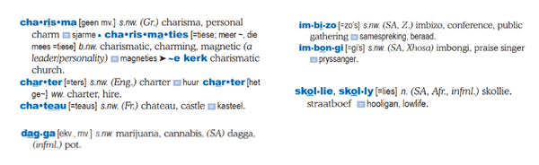 Die woordeboek bevat ook heelwat informele woorde wat dikwels op sosiale media gebruik word (soos cool, bra, paartie, zilch) en nuutskeppings wat as betekenisuitbreidings van bestaande woorde ontstaan.