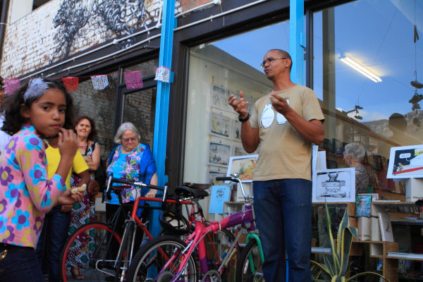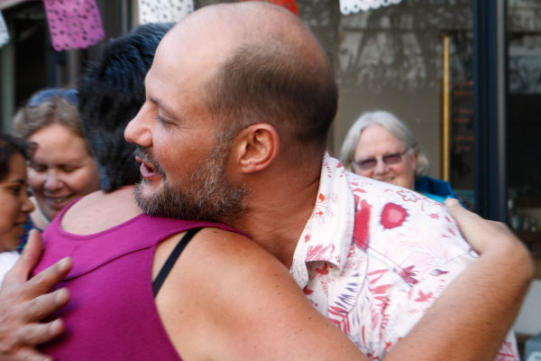Xavier Nagel, the owner of Bibliophilia, is thanked for his hard work by Ros.